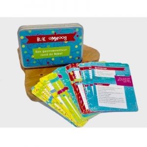 Blik omhoog bevat 26 kaarten met vragen en activiteiten voor mooie gezinsmomenten rond de Bijbel. Eenvoudig maar kostbaar, serieus en toch vrolijk, stoer maar ook kwetsbaar. Heb je bijvoorbeeld weleens een bevroren T-shirt race gedaan, achterstevoren gegeten of je neus in de tarwebloem gestoken? Durf jij met je gezin de uitdaging aan?