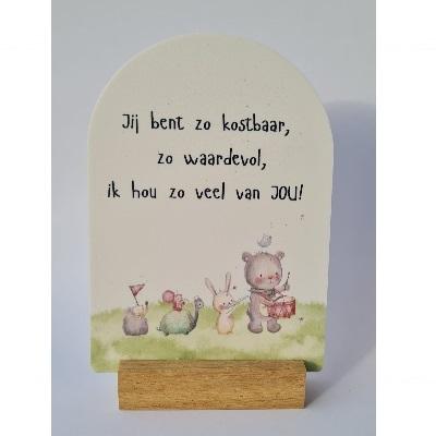 Geprinte boog met tekst. Dit boogje wordt geleverd inclusief standaard