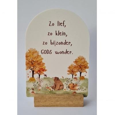 Geprinte boog met tekst. Dit boogje wordt geleverd inclusief standaard