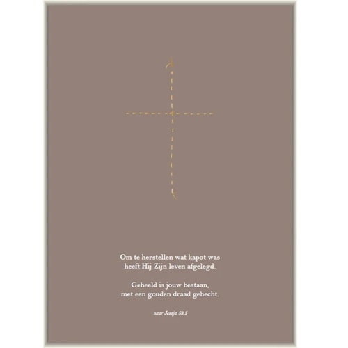 met een gouden draad gehecht.
