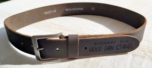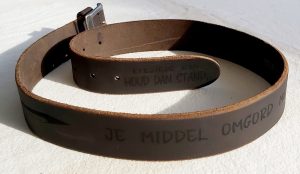 Echt leren riem, 85 cm lang, breedte 4 cm met tekst
