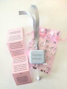 Het speeldoosje wordt geleverd in een rozekleurig zakje.