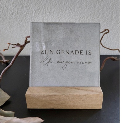 Wees de eerste om “Rustieke tegeltje grijs – Zijn genade is elke morgen nieuw – incl. standaard” te beoordelen Reactie annuleren