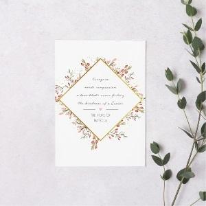 De kaart is gedrukt op lekker dik gestreken papier en aan beide kanten mat gelamineerd wat er voor zorgt dat hij heel lang goed blijft en niet gevoelig is voor krassen, verschillende elementen uit het ontwerp zijn met gold foil bedrukt wat hem helemaal afmaakt.
