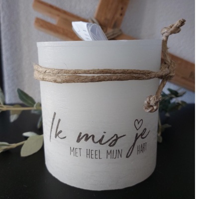 Windlicht S Ik mis je met heel mijn hart – ivoor
