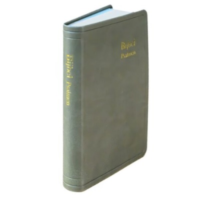 Zakbijbel (groot) met Psalmen met ritmische zetting in de notenbalk en formulieren. Flexibele omslag in de kleur taupe. 10,5 x 16 cm. Dundruk. Met 10 landkaartjes. Standaard in zandkleurige kartonnen koker.